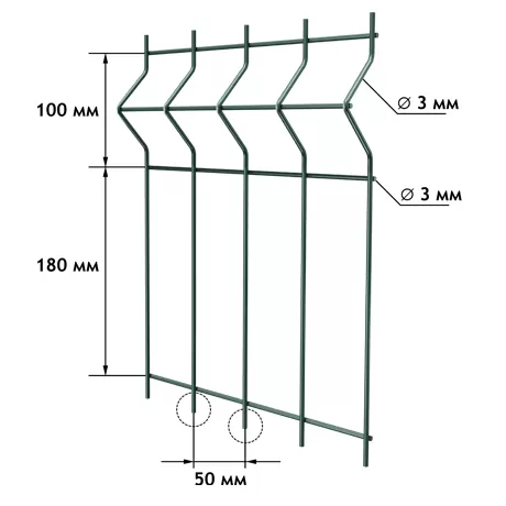 3D-забор — это секционное ограждение, представляющее собой сварную сетку с V-образными изгибами, выполняющими роль ребер жесткости. Такая конструкция обладает несколькими преимуществами: